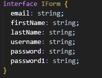 위의 예시는 "interface Name {}"을 사용하여 각 form에 들어가는 값들의 타입을 지정해둔것으로