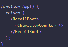 리코일은 상위 디렉토리(부모)에 아래와 같이 (Root.tsx)에 씌워놓음으로써 다른 요소들 사용이 가능하다.