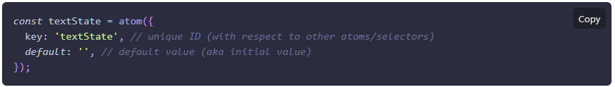 Atom은 State의 내용을 가지고있는 구성으로 어떤 곳에서든 이 내용을 끌어다 쓸수있다.