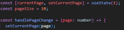 아래 handlePageChange는 해당 Pagination을 받을 index에서 아래와 같이 prop을 넘겨받아 currentPage를 계속 바꿔준다.